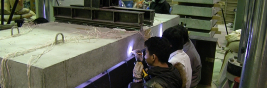 コンクリートの乾燥収縮は,コンクリート中からの水分の逸散によって生じ,その経時変化は構造物の周辺の温度,湿度等の環境条件,結合材や骨材等の使用材料の種類,コンクリートの配合および部材断面の形状寸法の影響を受ける。したがって,構造物中のコンクリートの収縮を算定するためには,コンクリート中の水分移動解析に基づき各部材のコンクリートの収縮を求めることが望ましい。しかし,コンクリート部材を棒部材と仮定し,コンクリートの収縮によって生じる変形を,平面保持の仮定が成り立つと仮定し簡易的に求める一般的な設計においては,水分移動解析に基づき各部材のコンクリートの収縮を求めることは,現実的ではない。そこで本研究室では,小さな供試体を用いて実構造物に生じる乾燥収縮を予測する手法の検討を行っている。