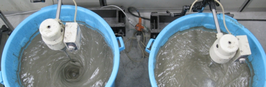 スラッジ水を練混ぜ水に用いた場合,コンクリートの強度および耐久性への影響は小さい。しかし,スランプは低下し,所定のワーカビリティーが損なわれることにスラッジ水利用の問題がある。グルコン酸のような低分子化合物の凝結遅延剤をスラッジ水にあらかじめ添加しておけば,セメントの水和が抑制されることでスランプの低下を小さくできる。しかし,高分子化合物の中にも,スラッジ水を用いたモルタルのフレッシュ性状を改善できる性質のものもあり,それらを組み合わせることでコンクリートの凝結時間をより精度よく調整できる技術の開発を行っている。