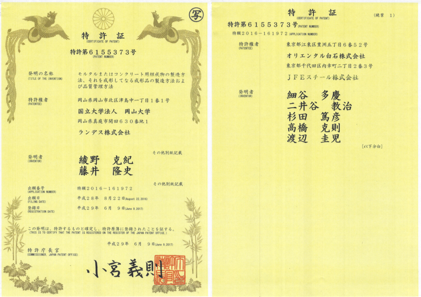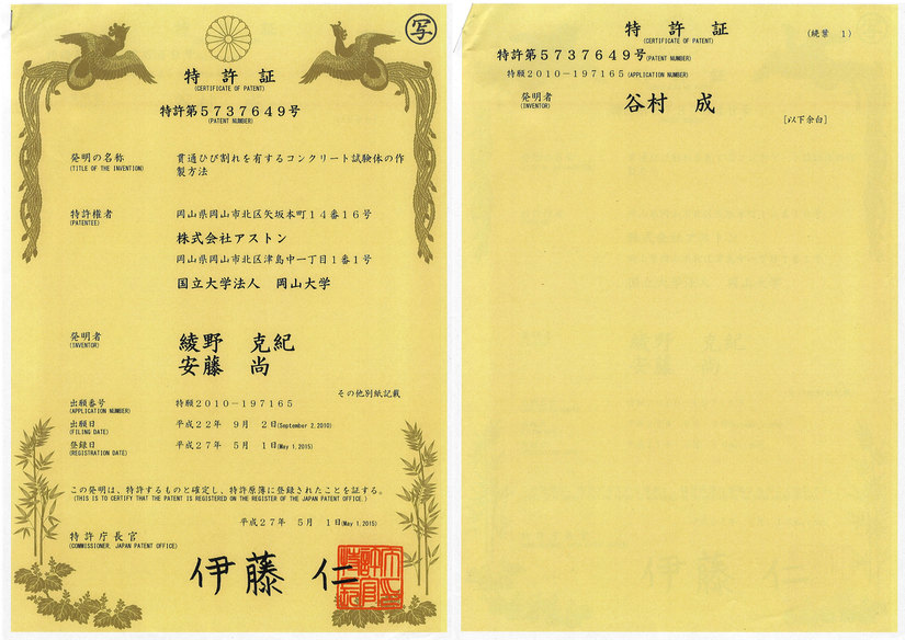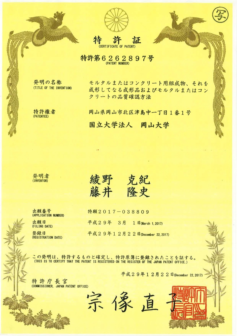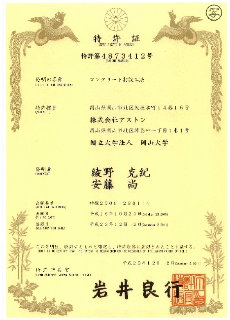 | 2011 | 土木学会技術開発賞受賞,綾野: 尿素を用いたひび割れ低減コンクリート(クラレスクリート)の開発 |